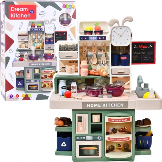 A gyerekkonyha a fény-, hang- és gőzeffekteknek köszönhetően valósághű főzési élményt nyújt. A gyerekek „főzhetnek”, „süthetnek” és „süthetnek serpenyőben”, elmoshatnak a mosogatóban és rendszerezhetik a kiegészítőket a polcokon. A minőségi, biztonságos kivitel hosszú élettartamot és kényelmes használatot garantál.