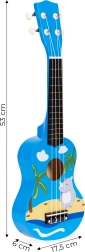 Ébressze fel a gyerekek fantáziáját az ECOTOYS ukulelével – könnyű, fából készült hangszer 3 éves kortól. 4 nylon húrt, hangolómechanikát, 12 bundot a pontosabb játékhoz, valamint kényelmes pengetést a mellékelt pengetővel kínál. A színes szigetes motívum első pillantásra elbűvöl, a hangszer pedig fejleszti a finommotorikát, a kreativitást és a zenei érzéket is.