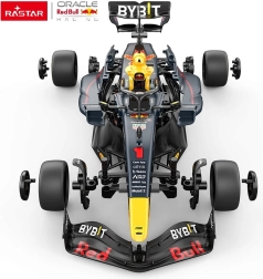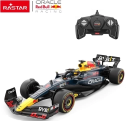 A Rastar márkájú, 1:16 méretarányú RED BULL F1 RB19 versenyautó élethű modellje precíz kidolgozással és gördülékeny irányítással érkezik 2,4 GHz frekvencián. A gumírozott kerekeknek, a független felfüggesztésnek és a minden irányú haladásnak köszönhetően valósághű vezetési élményt nyújt. A csomag része egy 55 darabos összeszerelő készlet és részletgazdag belső tér.