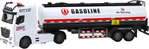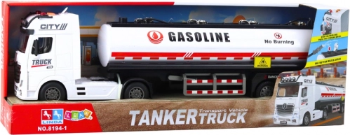 Nagy, 57 cm-es tartálykocsis teherautó játék fényekkel, hangokkal és vízszivattyú funkcióval. Leválasztható pótkocsi, nyitható ajtók, elemek a csomagban. Remek ajándék.