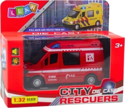 Realista, 1:32 méretarányú fém tűzoltóautó, amely remek szórakozást nyújt a kis hősöknek. Tartós fémből és minőségi műanyagból készül, rendelkezik felhúzós (pull-back) meghajtással, nyitható ajtókkal és fény- és hangeffektekkel. Kompakt méreteinek köszönhetően ideális otthoni játékhoz és járműgyűjteményekhez is.