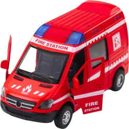 Fedezze fel a részletgazdag 1:32 méretarányú tűzoltó modellt, amely hűen utánozza a valódi bevetési járművet. A fémből és minőségi műanyagból készült robusztus felépítés hosszú élettartamot biztosít, míg a „FIRE STATION” feliratokkal díszített piros kivitel még hitelesebbé teszi. A pull-back meghajtást elég hátrahúzni, és a jármű magától előre indul, fokozva az akciódús játékélményt.