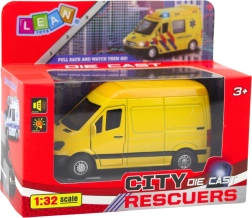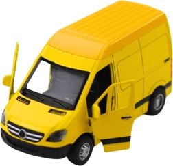 A valósághű, sárga, 1:32 méretarányú furgon fém alkatrészeket és minőségi műanyagot ötvöz a nagyobb tartósság és vonzó megjelenés érdekében. Kínál felhúzós (pull back) meghajtást, nyitható ajtókat és fény- és hangeffekteket, így játékra és gyűjtői modellnek egyaránt ideális.