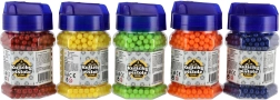 Pót-műanyag golyók 6 mm átmérővel gyerek pisztolyokhoz – ideálisak szórakoztató célbalövéshez. A csomag 1200 könnyű golyót tartalmaz praktikus, zárókupakos palackban az egyszerű adagolás és tárolás érdekében. A golyók színkeverékben érhetők el, és alkalmasak a szokásos játékpisztolyokhoz.