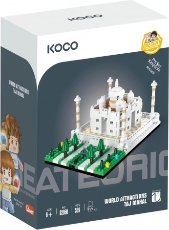 Építsd meg otthon az ikonikus nevezetességet a részletgazdag KOCO Tádzs Mahal készlettel. 539 műanyag elemből egy elegáns miniatűrt alkothatsz a híres indiai mauzóleumból. Ideális kreatív szórakozáshoz, a türelem fejlesztéséhez és stílusos dekorációnak a szobába. 6 éves kortól ajánlott.