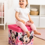 Stílusos és praktikus, fedeles MINNIE MOUSE dizájnú tárolódoboz, amely egyben ülőkének is használható gyerekeknek. Masszív fedéllel rendelkezik, legfeljebb 80 kg teherbírással, 27 l űrtartalommal és 30 × 30 × 30 cm szabványos mérettel. Könnyű, összecsukható, és ideális a gyerekszobába, játékszobába vagy fürdőbe.