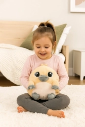 Fedezze fel a Cozy Noxxiez multifunkcionális, kacsacsőrű emlős formájú párnáját, amely minden gyermeket megörvendeztet. Extra puha, 100% poliészterből készült, és okos kialakításának köszönhetően kedvenc társsá válik otthon és útközben egyaránt. A két oldalsó nyílás pillanatok alatt felmelegíti a kezeket, és biztonságos rejtekhelyet is kínál az apróságoknak.