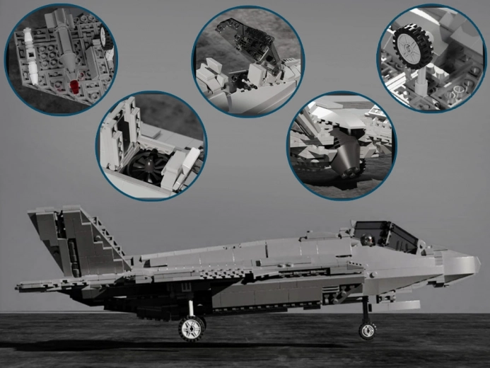 Építsen meg egy valósághű modellt a modern, többfeladatú F-35 LIGHTNING II vadászgépből 1600 darabból. A készlet tartalmaz nyitható kabint, mozgatható futóművet és nyitható hátsó részt, valamint lövedékvetőt és levehető bemutató talapzatot. Ideális repülésrajongóknak és technikai építőkészletek kedvelőinek 14 éves kortól.