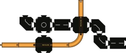 - Kétoldalas elemek – körforgalom és X kereszteződés több útvonalhoz és zárt körökhöz.