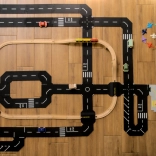 Az élelmiszeripari szilikonból készült útelemek puhák, tapadósak és nagyon tartósak – különböző felületeken jól tartanak, könnyen tisztíthatók (mosogatógépben is, 50 °C-ig), és gyors, intuitív összeillesztést kínálnak. Az extra nagy elemek megkönnyítik a kisgyermekek számára a kezelést, és támogatják a finommotorikát, a kéz–szem koordinációt és a térbeli képzelőerőt.