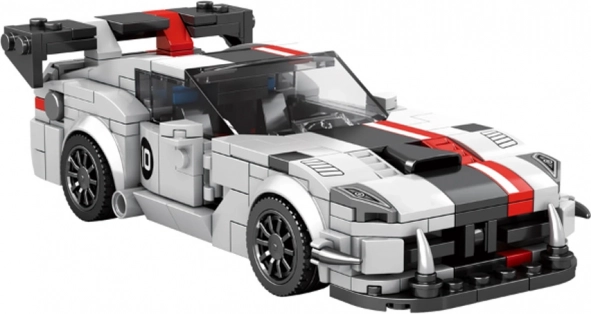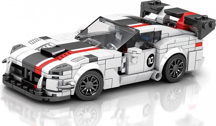 Műszaki építőkészlet szupersport Fehér Viper: 419 elem, fehér karosszéria fekete‑piros csíkkal, hátsó légterelő. Remek kihívás 14+ rajongóknak.