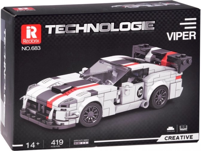 Műszaki építőkészlet – szupersportautó Fehér Viper hátsó légterelővel, 419 elem