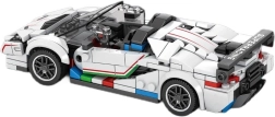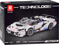 Építsd meg saját fehér szupersport kabriódat légterelővel 348 darabból. A modell lenyűgöz aerodinamikus dizájnjával, alacsony profiljával és sportos kerekeivel. Ideális a műszaki építőkészletek és a modern autóesztétika rajongóinak – közepes nehézségű építés 14+ korosztálynak.