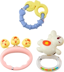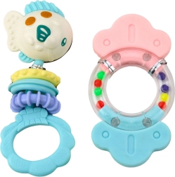 Ez a sokoldalú készlet 7 különböző csörgőt és rágókát tartalmaz, melyek mindegyike saját funkcióval rendelkezik. A csörgők rázásra finom, kellemes hangokat adnak, míg a rágókák masszírozzák az ínyt, csökkentve az első fogak kibújásával járó kellemetlenséget. Az ergonomikus formák a kis babakezekhez igazodnak, megkönnyítve a fogást és a kéz–szem koordináció fejlesztését.