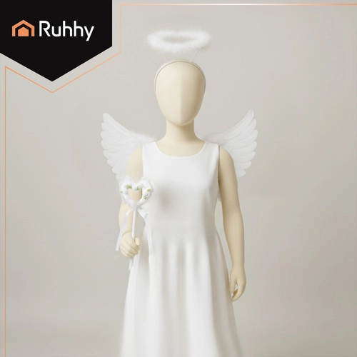 Könnyű és látványos, fehér angyalszárnyak glóriás fejpánttal és szív alakú pálcával – tökéletes kiegészítő angyal-, tündér- vagy fantasy jelmezekhez. A tollhatású, élethű megjelenésnek és a rugalmas vállpántoknak köszönhetően kényelmes viselet és fotókon is remekül mutat. Ideális Halloweenre, farsangra, műsorokra és fotózásokra, valamint stílusos lakásdekorációként is megállja a helyét.