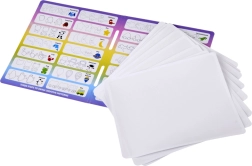 A csomag része a csatlakoztatott stylus/ecset, a kompakt bázis az egyszerű tároláshoz, valamint fehér kártyák készlete az ismételt gyakorláshoz és a könnyű mintakövetéshez.