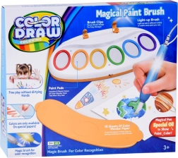A Color & Draw LED varázsecset a hagyományos festéket és vizet biztonságos fénnyel helyettesíti. A gyermek a színes alátétekkel ellátott állomáson választ színt, majd azt a mellékelt speciális papírokra viszi – a színek rövid idő múlva felragyognak, és a kép életre kel. Kreatív, tiszta és intuitív festés, amely támogatja a fantáziát és a finommotorikát.