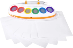 Az elektronikus, LED-es ecset lehetővé teszi, hogy a gyerekek a speciális papírra rajzoljanak és színezzenek víz és ruhafoltok nélkül, tisztán az asztalon is.