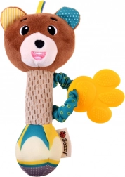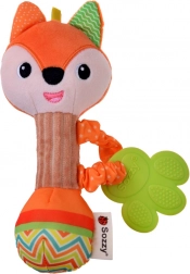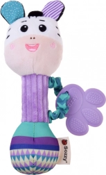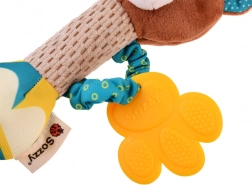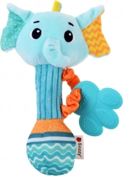 A szilikon rágóka masszázs-bütykökkel enyhíti a fogzást, míg a puha plüss és a bordázott fogantyú megkönnyíti a fogást a kis kezek számára. A játék könnyű, biztonságos, utazáshoz és otthoni ölelgetéshez egyaránt ideális.