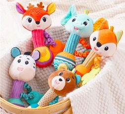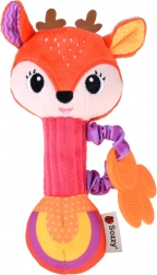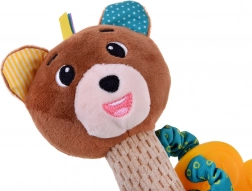 Beépített csörgő kellemes, dallamos hanggal, valamint susogó fülecskék segítik a baba figyelmének és érzékelésének fejlődését, zavaró zaj nélkül.