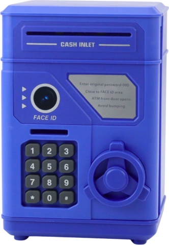 Szórakoztató és oktató jellegű persely elektronikus trezor formában, amely megtanítja a gyerekeket spórolni és bánni a pénzzel. Kínál PIN-kódos billentyűzetet, automatikus bankjegybehúzást, valamint biztonságos tárolást érméknek és készpénznek. A Face ID-t utánzó matrica kreatív eleme serkenti a fantáziát, és a pénz elhelyezését játékos élménnyé teszi.