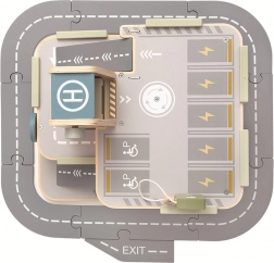 - 4 kisautó, helikopter, 3 közlekedési tábla, autómosó, 2 töltőoszlop (1 elektromos), lift, út, heliport