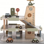 A minőségi 2Kids Toys fa garázs élethű városi közlekedési környezetet kínál három szinten. Az integrált útnak, liftnek és heliportnak köszönhetően a kicsi sofőrök parkolhatnak, tankolhatnak, moshatják az autót, és a heliportról gyors bevetésekre indulhatnak. A játék célja a képzelőerő, a kéz–szem koordináció és a motorikus készségek fejlesztése.