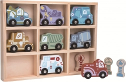 Fedezd fel a 8 darab fa autócska és 3 közlekedési tábla játékos készletét praktikus polccal – ideális a gyerekszobába és a játszósarokba. Támogatja a képzeletbeli játékot, fejleszti a finommotorikát, a kéz–szem koordinációt és a kreativitást. Az autók kifejezetten a kisgyermekek kezéhez lettek tervezve, könnyen megfoghatók és jól kezelhetők.