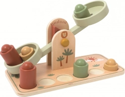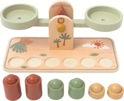 A fa gyerek mérleg szórakoztató és intuitív módon ismerteti meg az egyensúlyozás elvét. A két tálca és a központi mutató egyértelműen megmutatja a gyerekeknek, mi nehezebb és mi könnyebb. A készlet 6 színes súlyt tartalmaz három különböző tömegben (mindegyikből két darab), így könnyű különféle kombinációkat és kísérleteket végezni.
