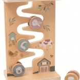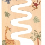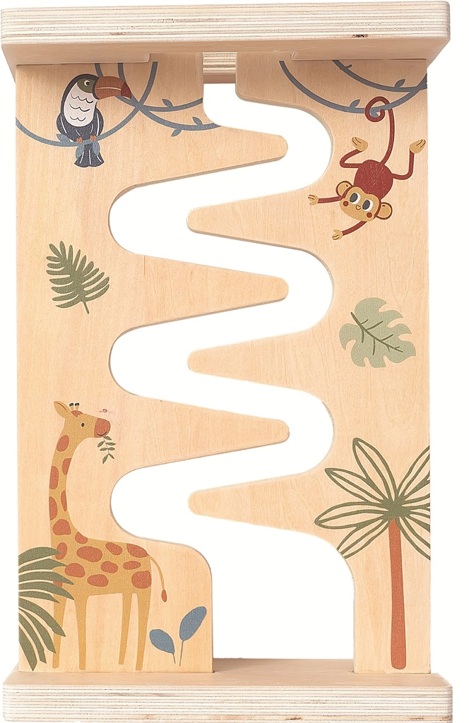 A legkisebbeknek szánt, szórakoztató fa labirintus minden kis felfedezőnek örömet okoz. A gyerekek állatképes fa korongokat vezetnek a kivágott pályán, miközben fejlesztik a finommotorikát, a kéz–szem koordinációt és a logikus gondolkodást. A színes természet- és állatmotívumok első pillantásra magukra vonják a figyelmet, a játék pedig biztonságos és 18 hónapos kortól ajánlott.