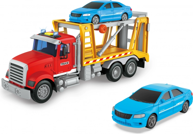 Szórakoztató vontató kis autóval a kis sofőröknek, rengeteg akcióval és örömmel. A lendkerekes meghajtásnak köszönhetően a jármű könnyen elindul, a valósághű élményről fény- és hangeffektek gondoskodnak, amelyeket a fülkén lévő gombbal lehet aktiválni. A csomag tartalmaz 3× AG13 elemet, a tetőben elhelyezve, így a gyerekek azonnal játszhatnak a kicsomagolás után.