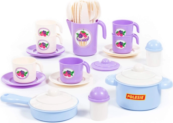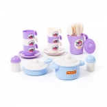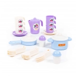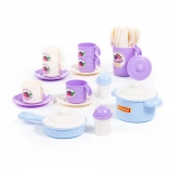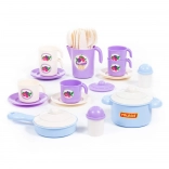 Gyerek teaszett Nastěnka ideális módon biztosít felejthetetlen játékot a kis szakácsoknak. A készlet 38 darabot tartalmaz, amelyek szórakozásra és biztonságos játékra vannak tervezve.