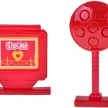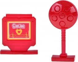 - Sztetoszkóp (hanggal), világító lámpácska, digitális hőmérő (forgatható jelzővel), mozgó dugattyús fecskendő, reflexkalapács, otoszkóp/lámpácska, laryngológiai tükör, kémcsövek és pipetta, „vese” tálka, DOCTOR kártya, „gyógyszer” doboz, további apró kiegészítők