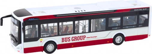 Fém városi autóbusz 1:42, piros. Fények, hangok, nyitható ajtók és fedlapok. Masszív szerkezet, 28,5 cm hossz. Remek 3 éves kortól és gyűjtőknek is.