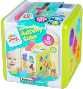 A kocka fény és hanghatásokkal van ellátva, amely fokozza a játékélményt és segíti a gyermek érzékszervi észlelésének fejlődését. Továbbá, a praktikus fogantyúnak köszönhetően könnyen hordozható.