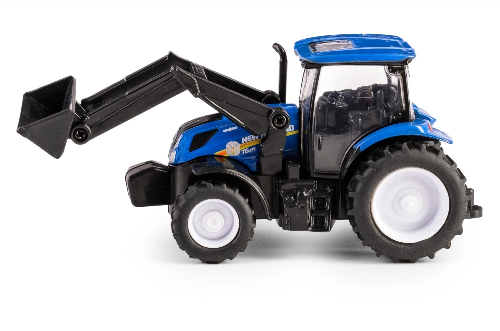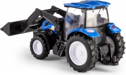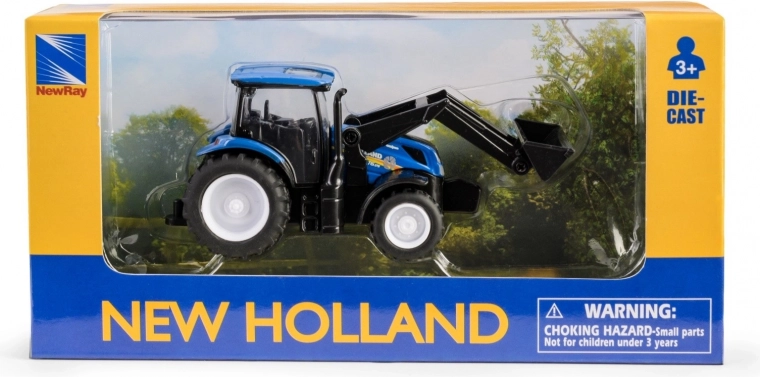 Fém traktor modell NEW HOLLAND T6 mozgatható elülső kanállal és gumiborítású abroncsokkal – tökéletes választás a mezőgazdasági gépek kis rajongóinak. Élethű kidolgozást, tartós felépítést és órákon át tartó kreatív játékot kínál otthon és a „farmon” a gyerekszobában.