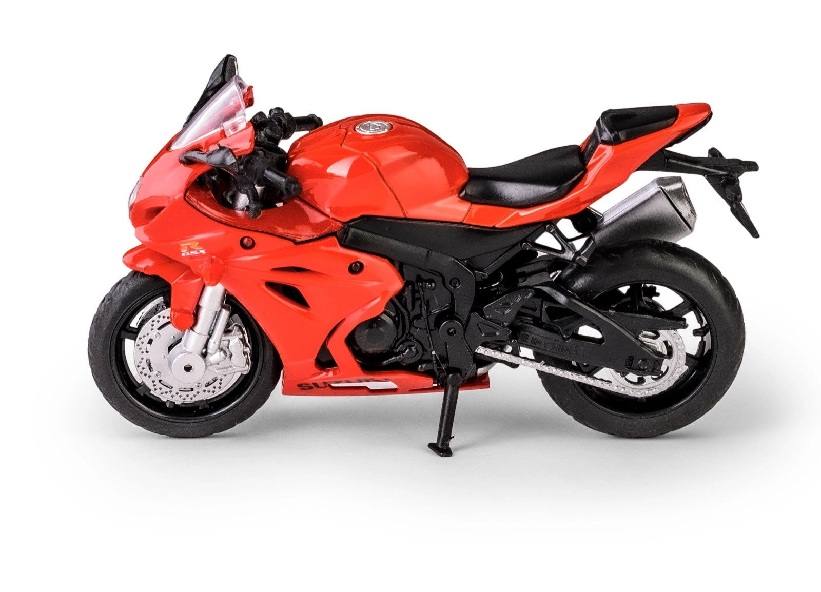 Részletes karosszéria, féktárcsák, kipufogó és tükrök, amelyek a valódi SUZUKI GSX‑R1000-et idézik. Ideális gyűjtőknek és dekorációnak is.