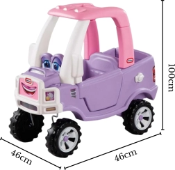 A rózsaszín‑lila Little Tikes Cozy Coupe Truck bébitaxi 18 hónapostól 5 éves korig biztonságos, aktív és kreatív szórakozást kínál otthon és a szabadban. Kínál foot‑to‑floor üzemmódot, kivehető padlót, szülői tolási lehetőséget, nyitható ajtót, dudát és tágas „csomagtartót” a játékoknak.