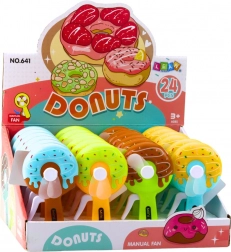 A fánk alakú kézi ventilátor praktikus és játékos kiegészítő forró napokra. A kar egyszerű meghúzásával működik, amely megforgatja a puha lapátokat és azonnali felfrissülést biztosít. Kompakt méretének köszönhetően elfér hátizsákban, kézitáskában és a gyerekek kezében is.