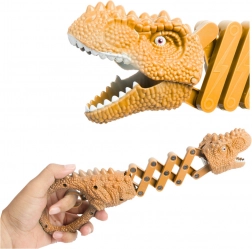 Szórakoztató játék kis paleontológusoknak: harapós dinoszaurusz barna színben, pisztolyos megfogóval. A markolat megnyomására a mozgatható állkapcsok élethűen összecsukódnak, rengeteg nevetést és akciódús játékot biztosítva. Tartós kivitel minőségi műanyagból, amely fejleszti a finommotorikát, a koordinációs képességeket és a reflexeket.