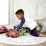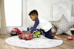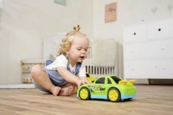A sima kerekek és a szabadonfutó mechanizmus megkönnyítik, hogy a gyerekek a padlón és a szőnyegen is tologassák az autókat – csak meglökni és már gurul is.