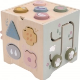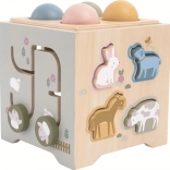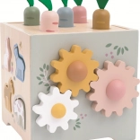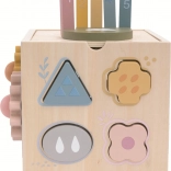 Ez a minőségi fa motorikus kocka finom pasztellszíneivel és bájos állatillusztrációival ösztönzi a gyerekek természetes kíváncsiságát. Az 5 játékos oldallal és a cserélhető tetőkkel rengeteg módot kínál a tanulásra és szórakozásra – a formák és állatok válogatásától és párosításától a forgatáson és rakosgatáson át az első számolásig. Játék után egyszerűen elpakolhatsz minden elemet belülre, így otthon rend marad.