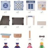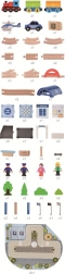 Tematikus kiegészítők, mint a rendőrautó, állomásépület, lámpák, táblák és figurák gazdagítják a játékot történetekkel, és segítenek a közlekedési alapismeretek elsajátításában.