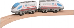 Modern nagysebességű, elemes vonat fa vasútpályákhoz, amely örömet szerez minden kis mozdonyvezetőnek. Stílusos kék-fehér szerelvény élethű részletekkel, mágneses kapcsolással és önjáró üzemmel, rengeteg akcióval, miközben fejleszti a finommotorikát, a koordinációt és a képzelőerőt. Kompatibilis a legtöbb szabványos fa sínszettel.