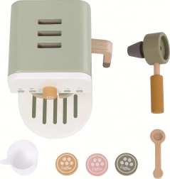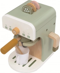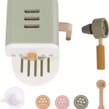 Minőségi anyagok (természetes fa, MDF és rétegelt lemez) és kellemes pasztell színek gondoskodnak róla, hogy a kávéfőző szépen illeszkedjen a gyerekszobába. A szett mindent tartalmaz a „kávékészítéshez”, és inspirálja a szerepjátékot, amely támogatja a kommunikációt és a fantázia fejlődését.
