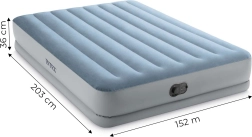 A praktikus INTEX felfújható ágy ideális ideiglenes vendégágyként, nyaralóba vagy utazáshoz. A megemelt kialakítás könnyíti a lefekvést és felkelést, míg a velúr felület kellemes tapintású és megakadályozza a lepedő csúszását. Az integrált elektromos pumpa kb. 3 perc alatt használatra készre fújja az ágyat, és ugyanilyen gyors a leeresztés is.