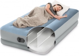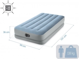 Kényelmes megoldást keres vendégeknek, utazáshoz vagy nyaralóba? Az Intex felfújható matrac a kényelmet, stabilitást és mobilitást ötvözi. A velúr felület kellemes tapintású és megakadályozza a lepedő csúszkálását, míg a megerősített Fiber-Tech kamrák és a Dura-Beam keret szilárdságot adnak az ágynak kellemetlen ringatózás nélkül.