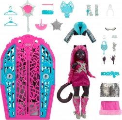 Az interaktív, koporsó alakú ruhásszekrény részletgazdag, zárható, és tárolóként is szolgál. A talizmán meghúzásával a baba látványosan felfedi magát – ez a „wow-pillanat” újra és újra átélhető. A stílusos kiegészítők ruhákat, cipőket, kesztyűket, szemüvegeket és ékszereket tartalmaznak, amelyek tetszés szerint kombinálhatók, így több mint 125 outfitvariáció hozható létre.