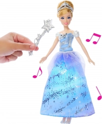 Éld át a mese varázsát a Disney Hercegnő Hamupipőke babával varázslatos báli ruhában. Elég, ha a mellékelt pálcával (vagy a kezeddel) meglendítesz a baba előtt, és színes fények valamint varázslatos hangeffektek indulnak el, akár négy különböző módban. A babának mozgatható karjai vannak, csillogó ruhát visel levehető szoknyával, tiarát és cipellőket a végtelen mesés történetekhez.