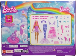 Kezdje meg az ünnepi visszaszámlálást egy ajándékkal, amely minden nap örömet szerez. Az első ablak mögött egy hosszú, rózsaszín hajú Barbie baba rejtőzik, a következő napok pedig ruhácskákat és kiegészítőket fednek fel a mesés átalakulásokhoz. A gyerekek saját történeteket alkothatnak, és fejleszthetik fantáziájukat a tematikus elemek színes kombinációjának köszönhetően.